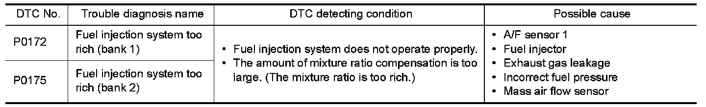 P0172, P0175 FUEL INJECTION SYSTEM FUNCTION