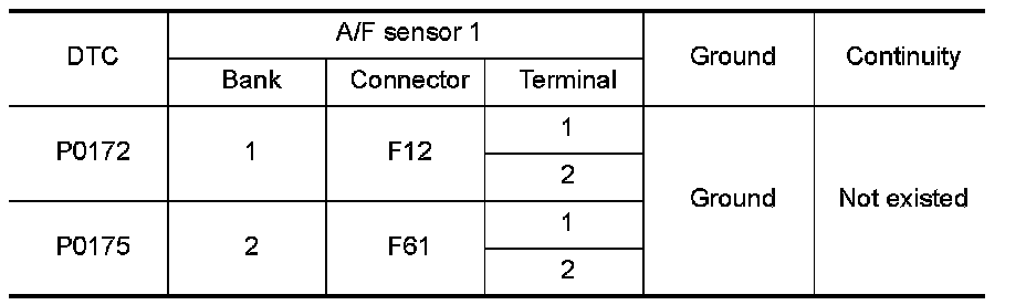 5.Check the continuity between A/F sensor 1 harness connector and ground, or ECM harness connector and ground.