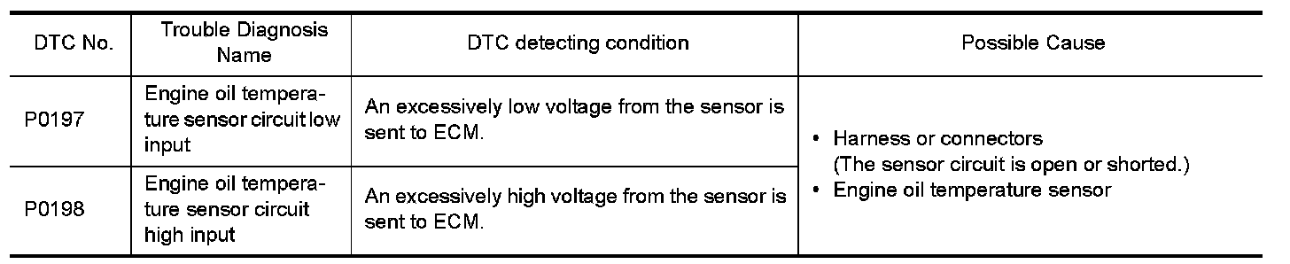 NO- Replace engine oil temperature sensor. Refer to .Exploded View