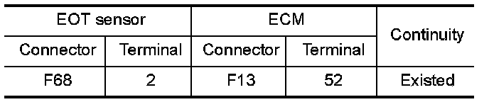 3.Check the continuity between EOT sensor harness connector and ECM harness connector.