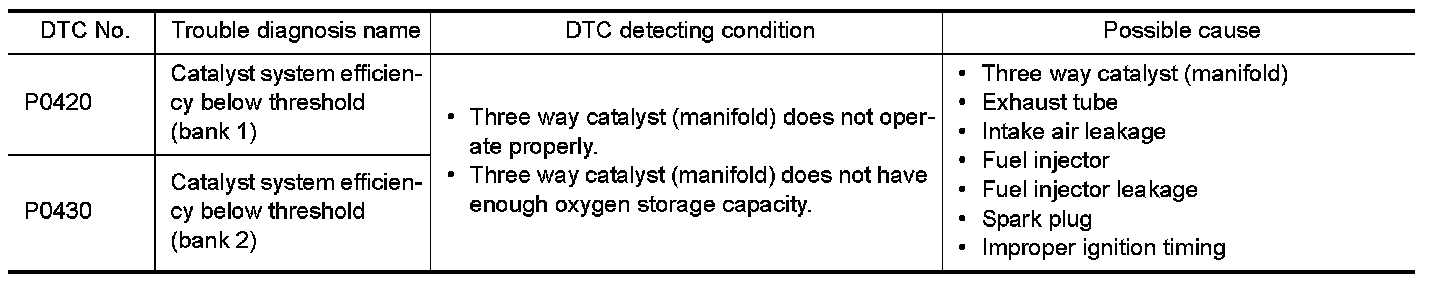 P0420, P0430 THREE WAY CATALYST FUNCTION