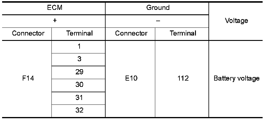8.Check the voltage between ECM harness connector terminals under the following conditions.