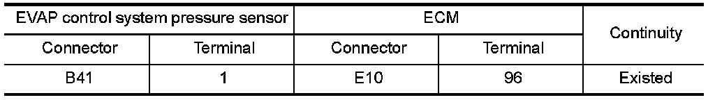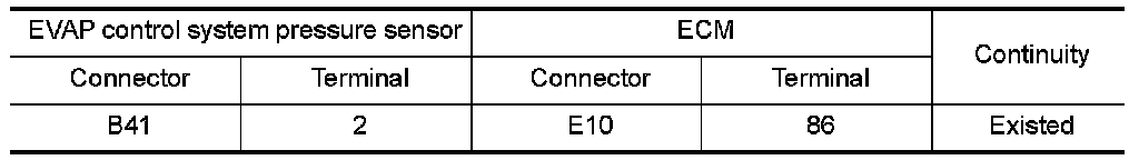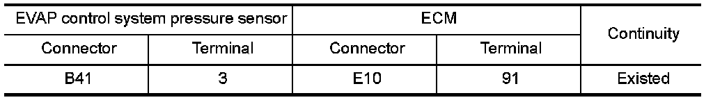 1.Check the continuity between EVAP control system pressure sensor harness connector and ECM harness connector.