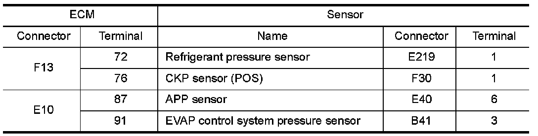 2.Set voltmeter probes to ECM harness connector terminals under the following conditions.