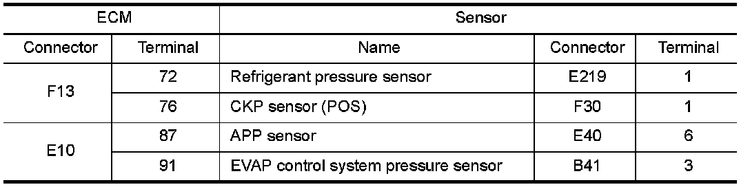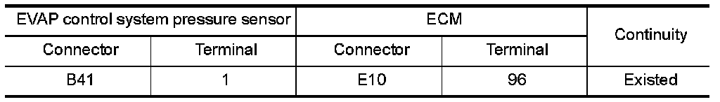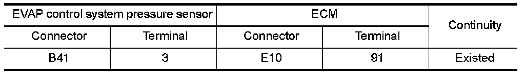 1.Check the continuity between EVAP control system pressure sensor harness connector and ECM harness connector.