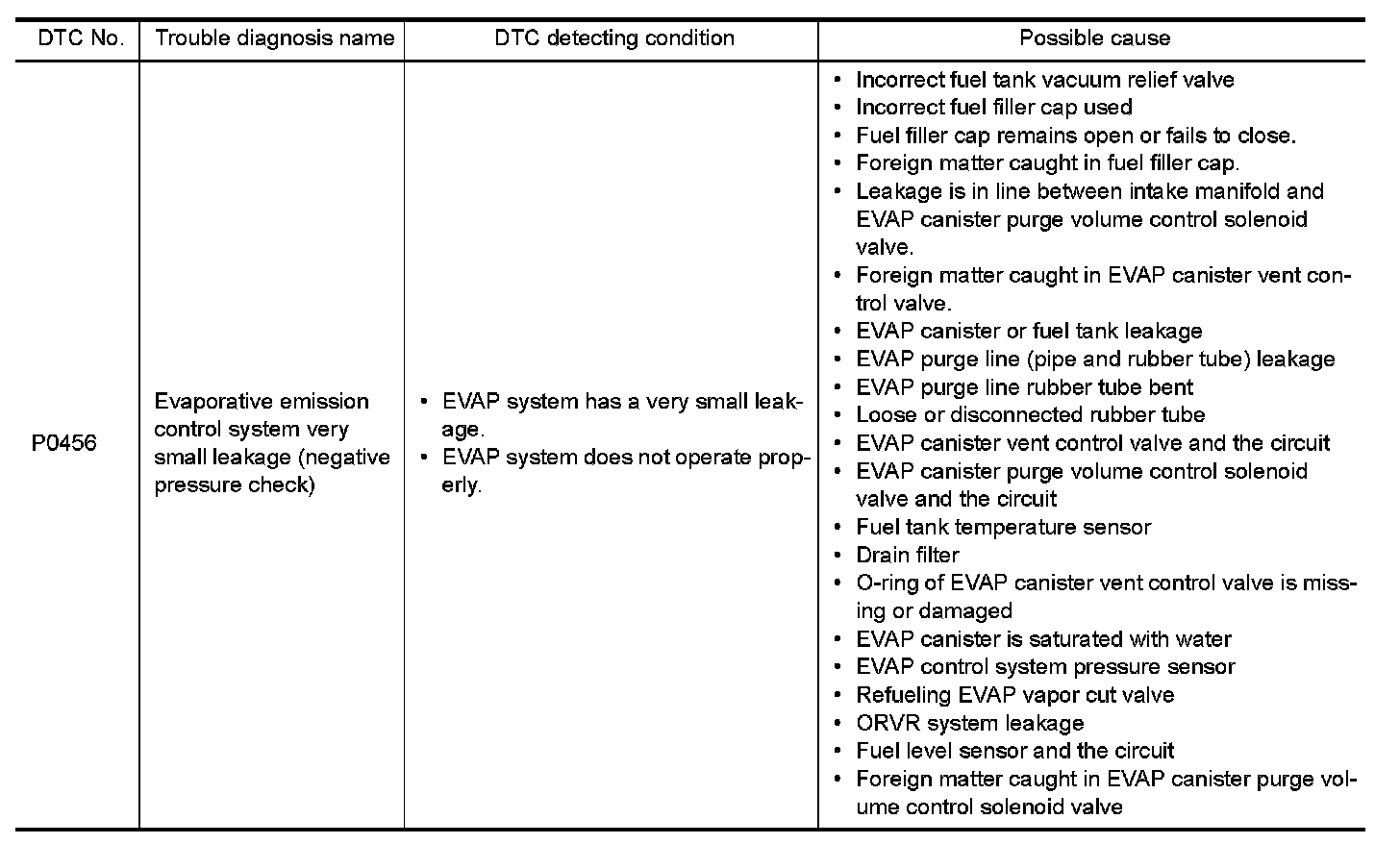 If ECM judges a leakage which corresponds to a very small leakage, the very small leakage P0456 will be detected.
