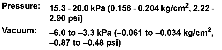 - Never exceeded 4.12 kPa (0.042 kg/cm2, 0.6 psi).