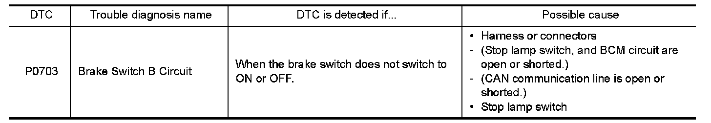 BCM detects ON/OFF state of the stop lamp switch and transmits the data to the TCM via CAN communication by converting the data to a signal.