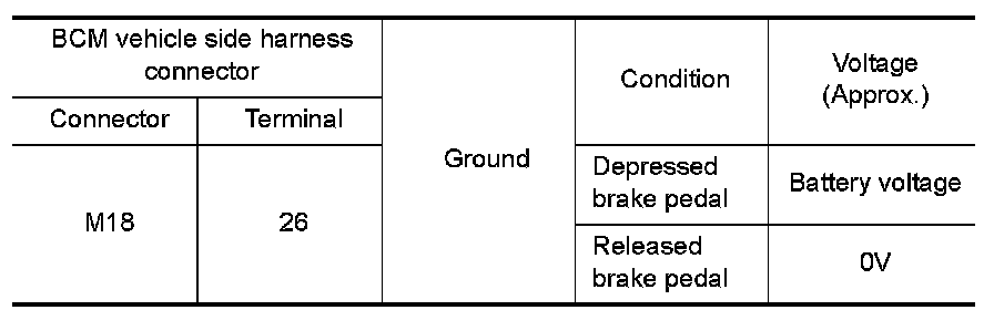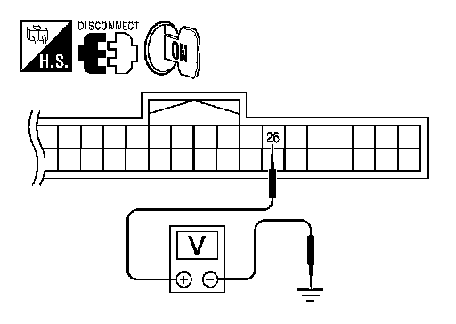 3.Check voltage between BCM vehicle side harness connector terminal and ground.