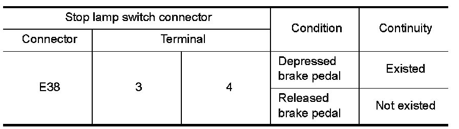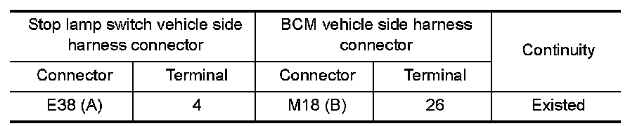 2.Check continuity between stop lamp switch vehicle side harness connector terminal and BCM vehicle side harness connector terminal.