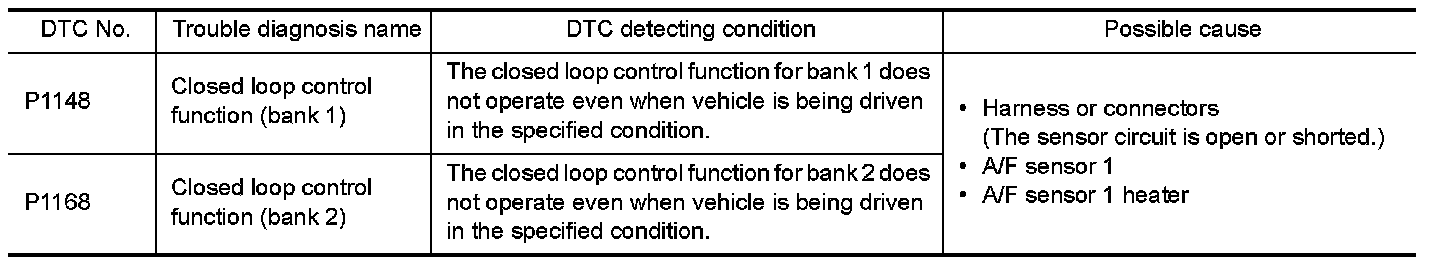 DTC P1148 or P1168 is displayed with another DTC for A/F sensor 1.