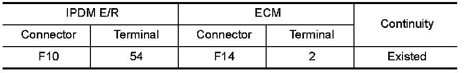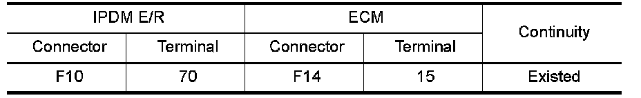 1.Check the continuity between IPDM E/R harness connector and ECM harness connector.