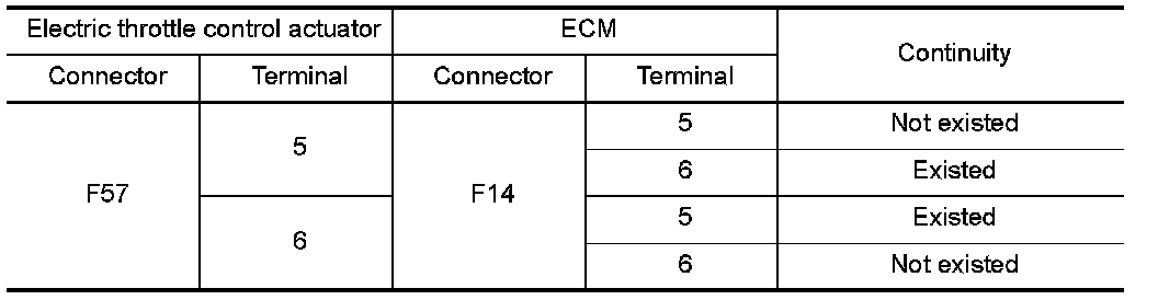 4.Check the continuity between electric throttle control actuator harness connector and ECM harness connector.