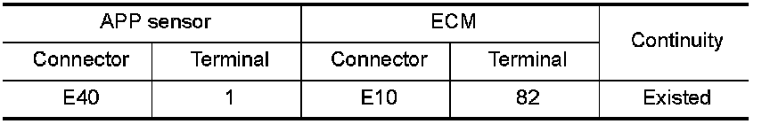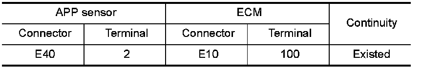 1.Check the continuity between APP sensor harness connector and ECM harness connector.
