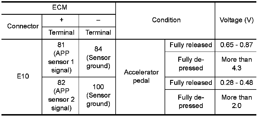 receiving the signal from the accelerator pedal position sensor. The ECM uses this signal for engine operations such as fuel cut.