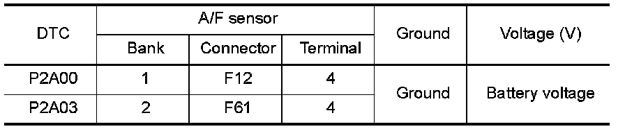 3.Check the voltage between A/F sensor 1 harness connector and ground.
