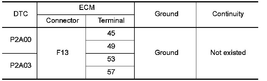 4.Check the continuity between A/F sensor 1 harness connector and ground, or ECM harness connector and ground.