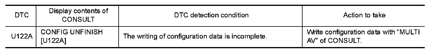 When U122A is detected, write configuration data with "MULTI AV" of CONSULT.