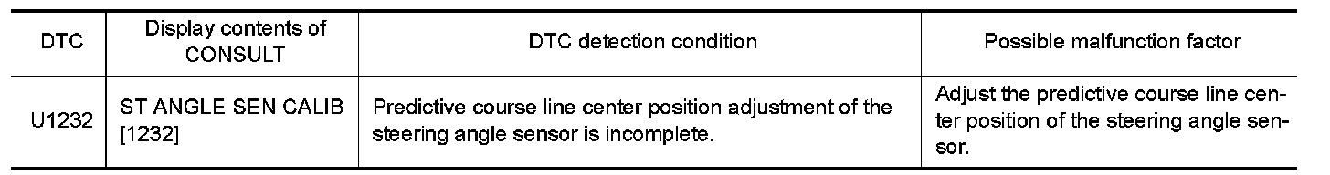 When U1232 is detected, adjust the predictive course line center position of the steering angle sensor.