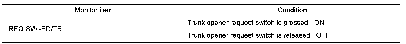 Check trunk opener request switch REQ SW -BD/TR in Data Monitor mode.