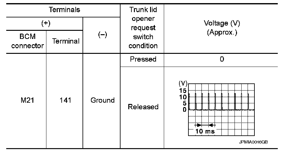 1. CHECK TRUNK OPENER REQUEST SWITCH OUTPUT SIGNAL
