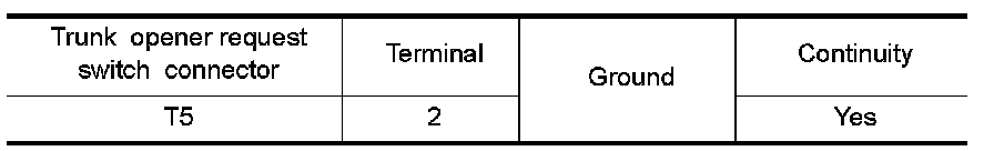 Check continuity between trunk opener request switch connector and ground.