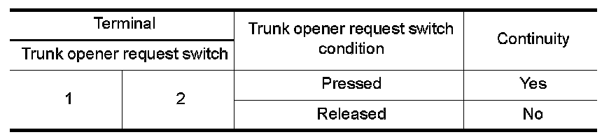 2. CHECK TRUNK OPENER REQUEST SWITCH CIRCUIT