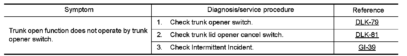 TRUNK LID OPENER SWITCH : Symptom Table