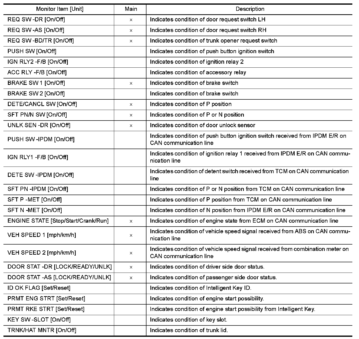 INTELLIGENT KEY : CONSULT Function (BCM - INTELLIGENT KEY)