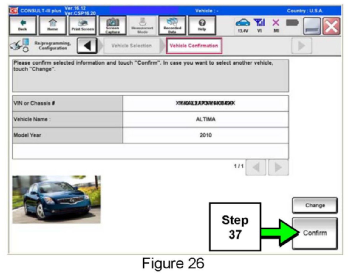 If the VIN displayed is incorrect, input the correct VIN. When finished, select Confirm.