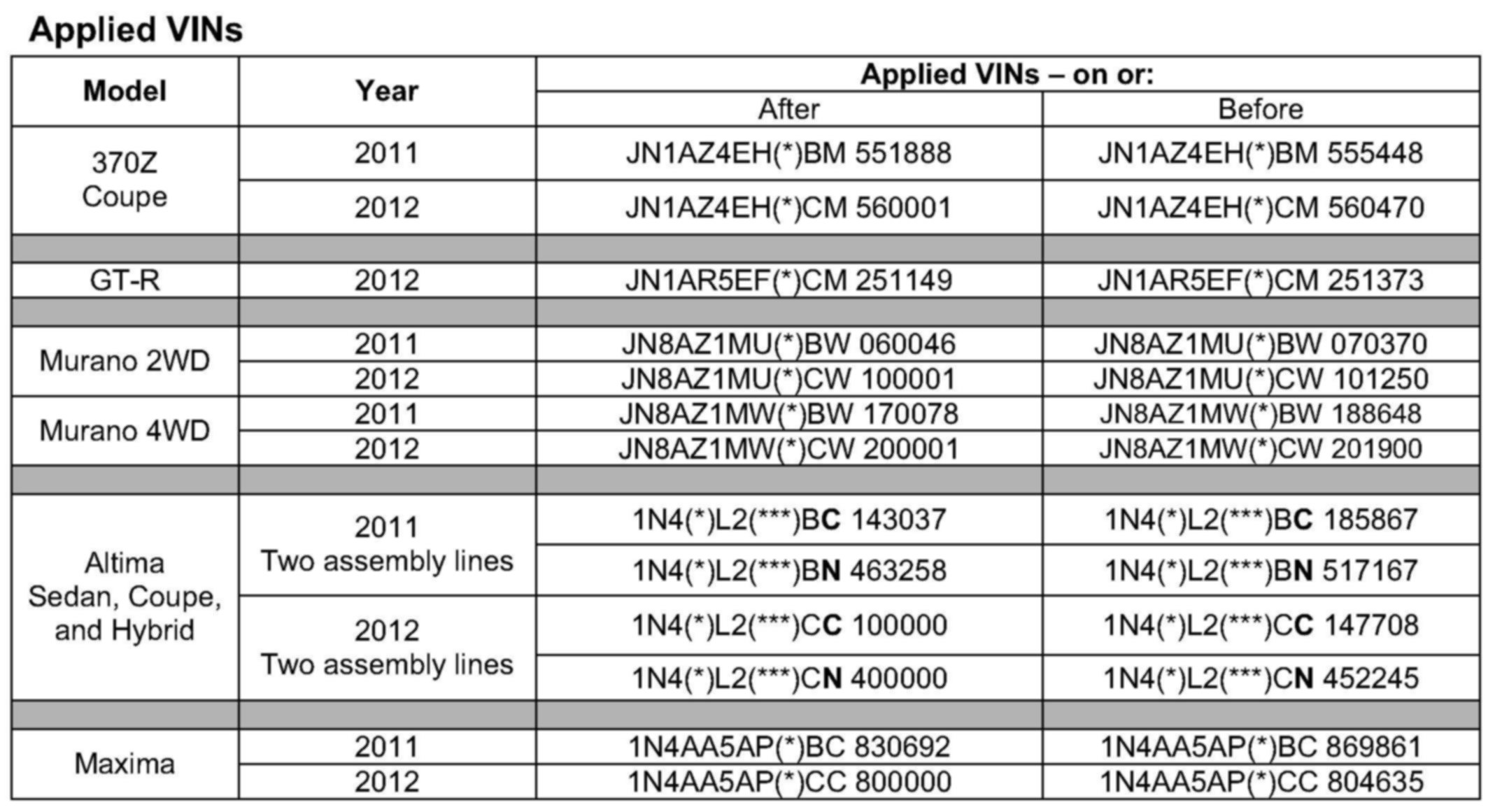 1. The vehicle you are working on falls within the Applied Range of this bulletin (see Applied Dates and VINs table above),