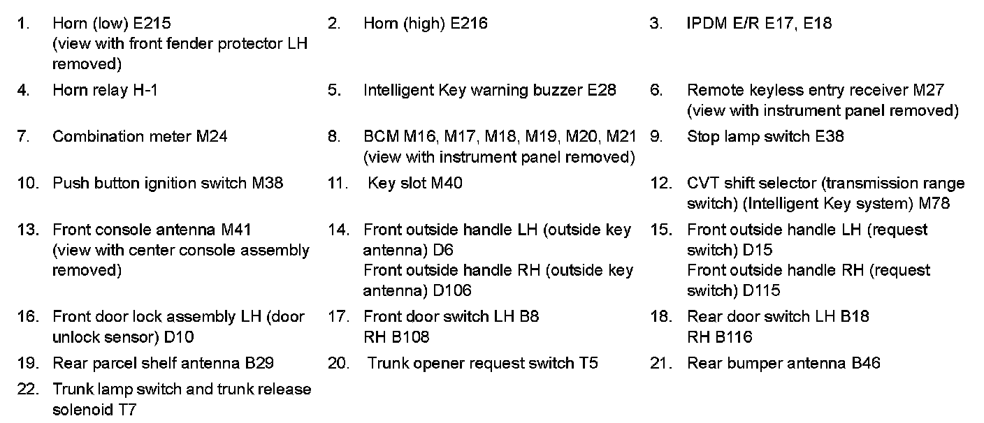 INTELLIGENT KEY : Component Parts Location