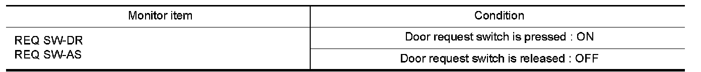 Check door request switch REQ SW-DR, REQ SW-AS in Data Monitor mode.
