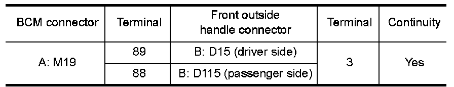 2.Check continuity between BCM connector and front outside handle connector.