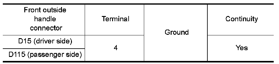 Check continuity between front outside handle connector and ground.