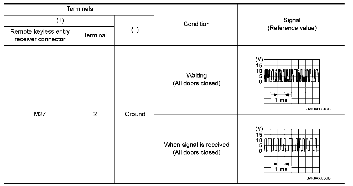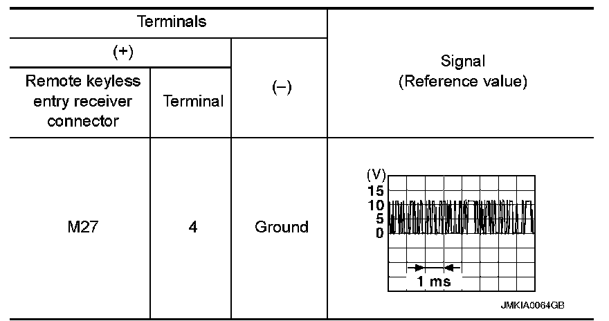 2.Check signal between remote keyless entry receiver connector and ground with oscilloscope.