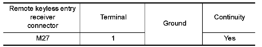 Check continuity between remote keyless entry receiver connector and ground.