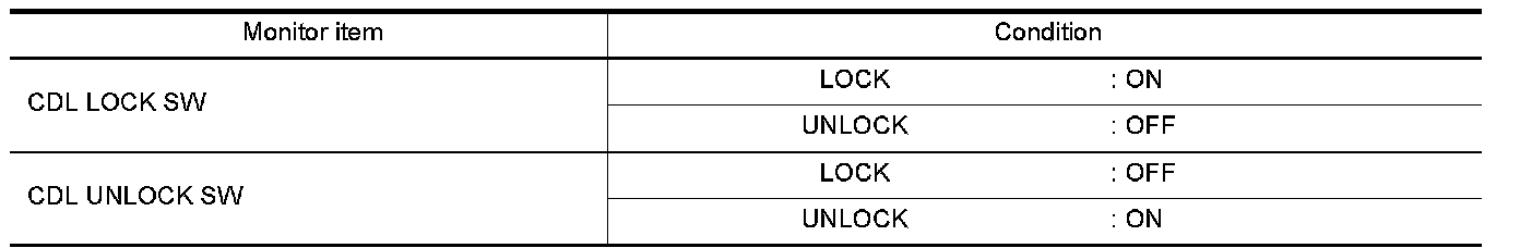 Check CDL LOCK SW, CDL UNLOCK SW in Data Monitor mode with CONSULT.