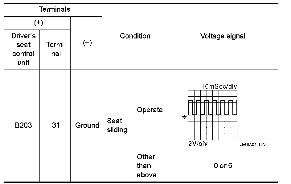 2.Read voltage signal between driver seat control unit harness connector and ground with oscilloscope.
