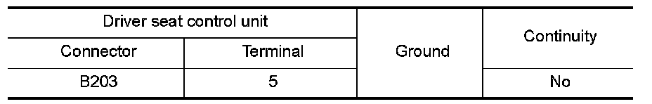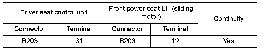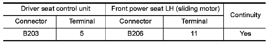 3.Check continuity between driver seat control unit harness connector and front power seat LH (sliding motor) harness connector.