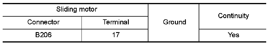2.Check continuity between front power seat LH (sliding motor) harness connector and ground.