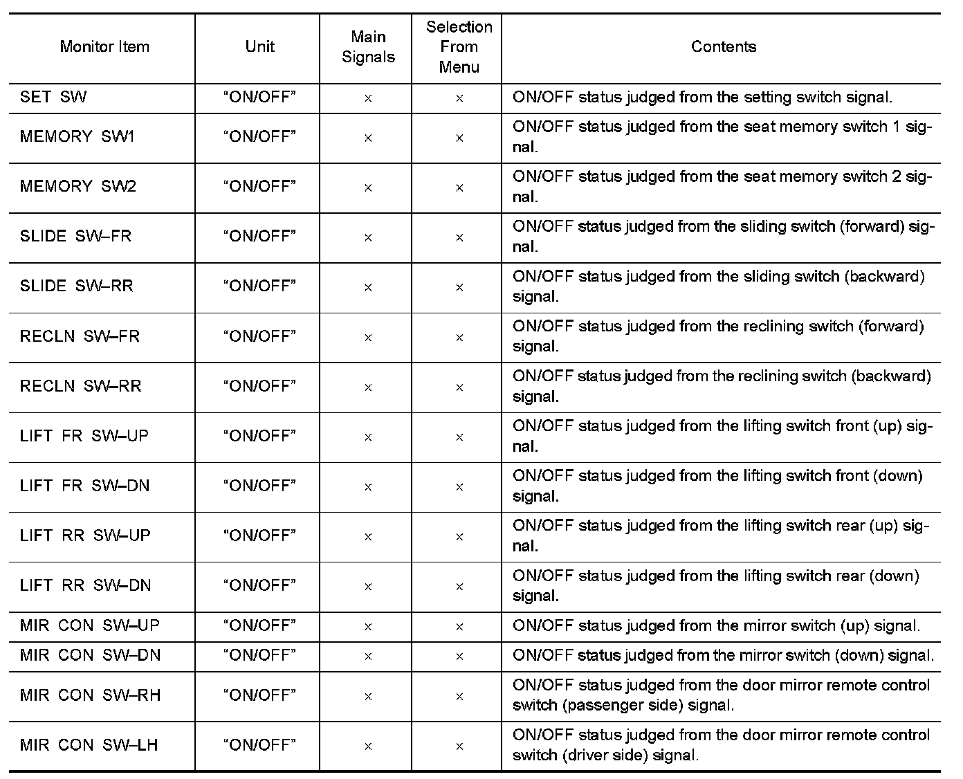 DIAGNOSIS SYSTEM (DRIVER SEAT C/U)