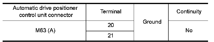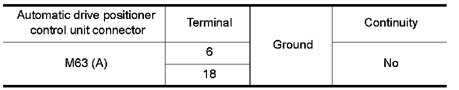2.Check continuity between automatic drive positioner control unit harness connector and ground.