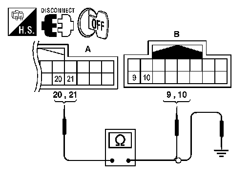 4.Check continuity between automatic drive positioner control unit harness connector and ground.