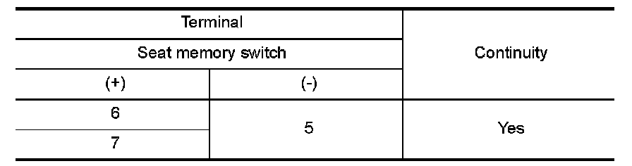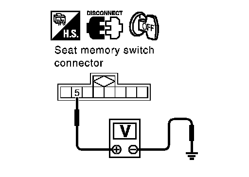 3.Check continuity between driver seat control unit harness connector and seat memory switch harness connector.