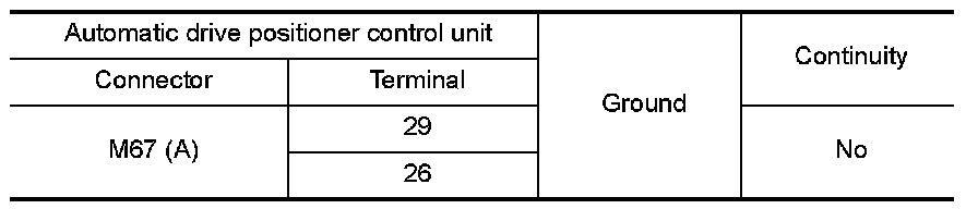 4.Check continuity between automatic drive positioner control unit harness connector and ground.