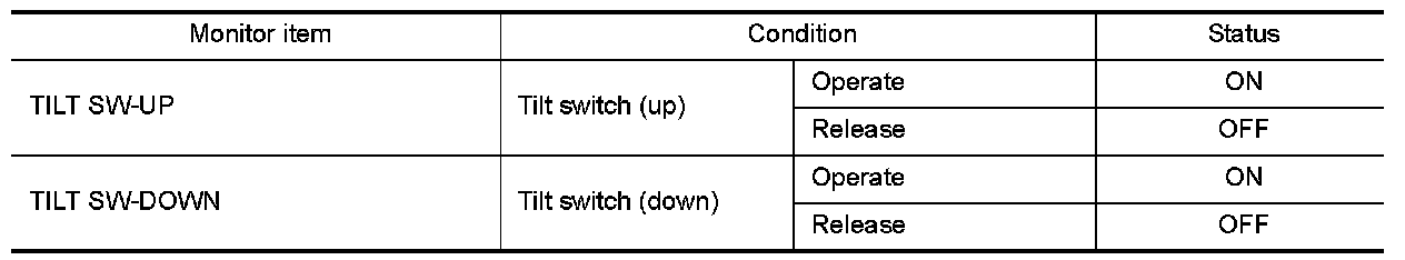 1.Select "TILT SW-UP", "TILT SW-DOWN" in "Data monitor" mode with CONSULT.