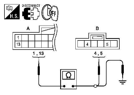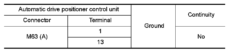3.Check continuity between automatic drive positioner control unit harness connector and ground.
