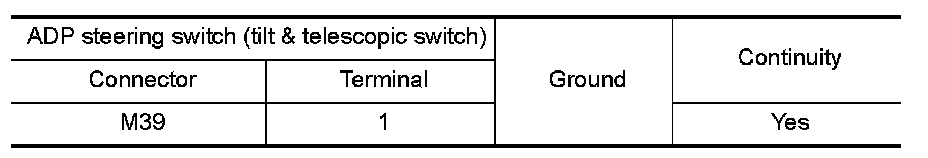 3.Check continuity between ADP steering switch (tilt & telescopic switch) and ground.