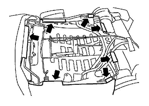 4.Release the seven seatback retainers from the seatback frame as shown.